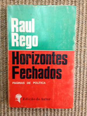 Hoje, vou falar de "Horizontes Fechados / Páginas de Política", um livro de Raul Rego, uma edição do autor, de 1969, distribuído pela Editorial Inquérito. Publicado creio que em setembro, tenho anotado que comprei o meu exemplar em Lisboa, em 22.11.69, pouco tempo depois das "eleições" de outubro desse ano.